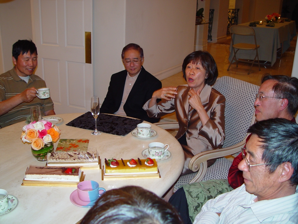 The champagne and appetizers prepared us well for the stone crabs that followed. SL tried to explain to us that June was not a good month for stone crabs but nobody believed him. This was followed by a sumptuous dinner. After consuming an enormous amount of food and an appropriate amount of fermented grape juice, men and women were reunited in a large dessert table and happy conversation continued till late at night.