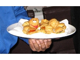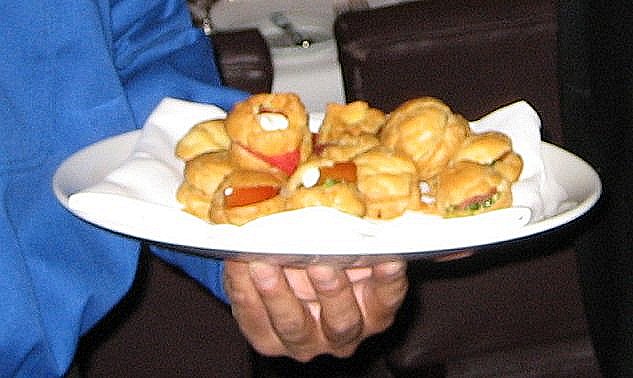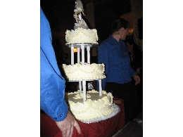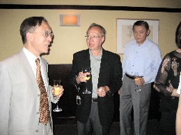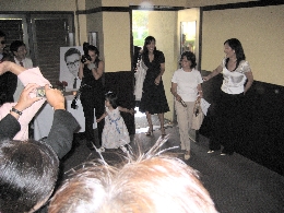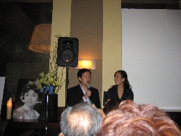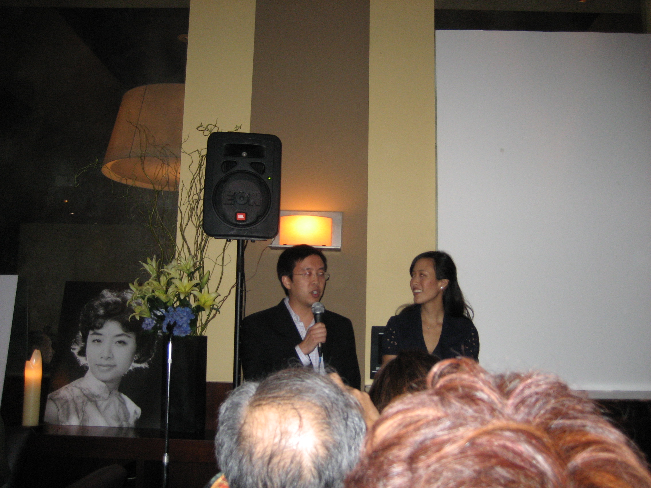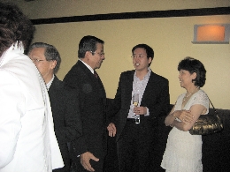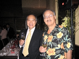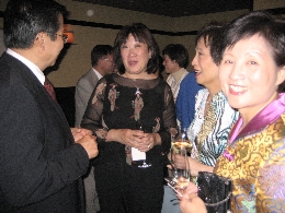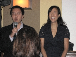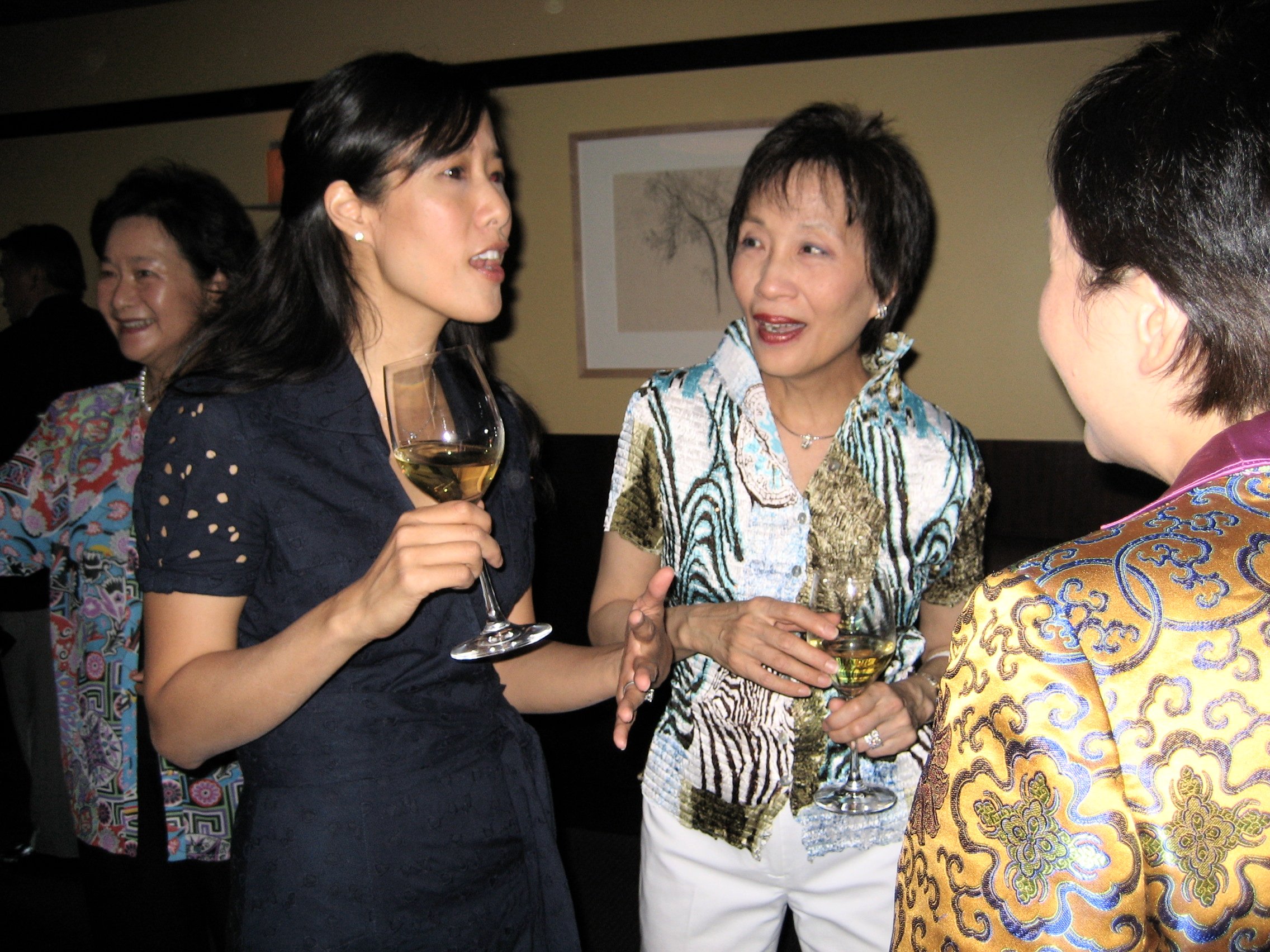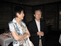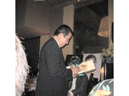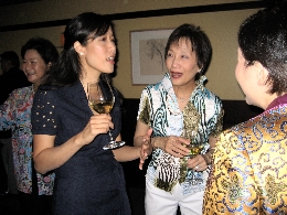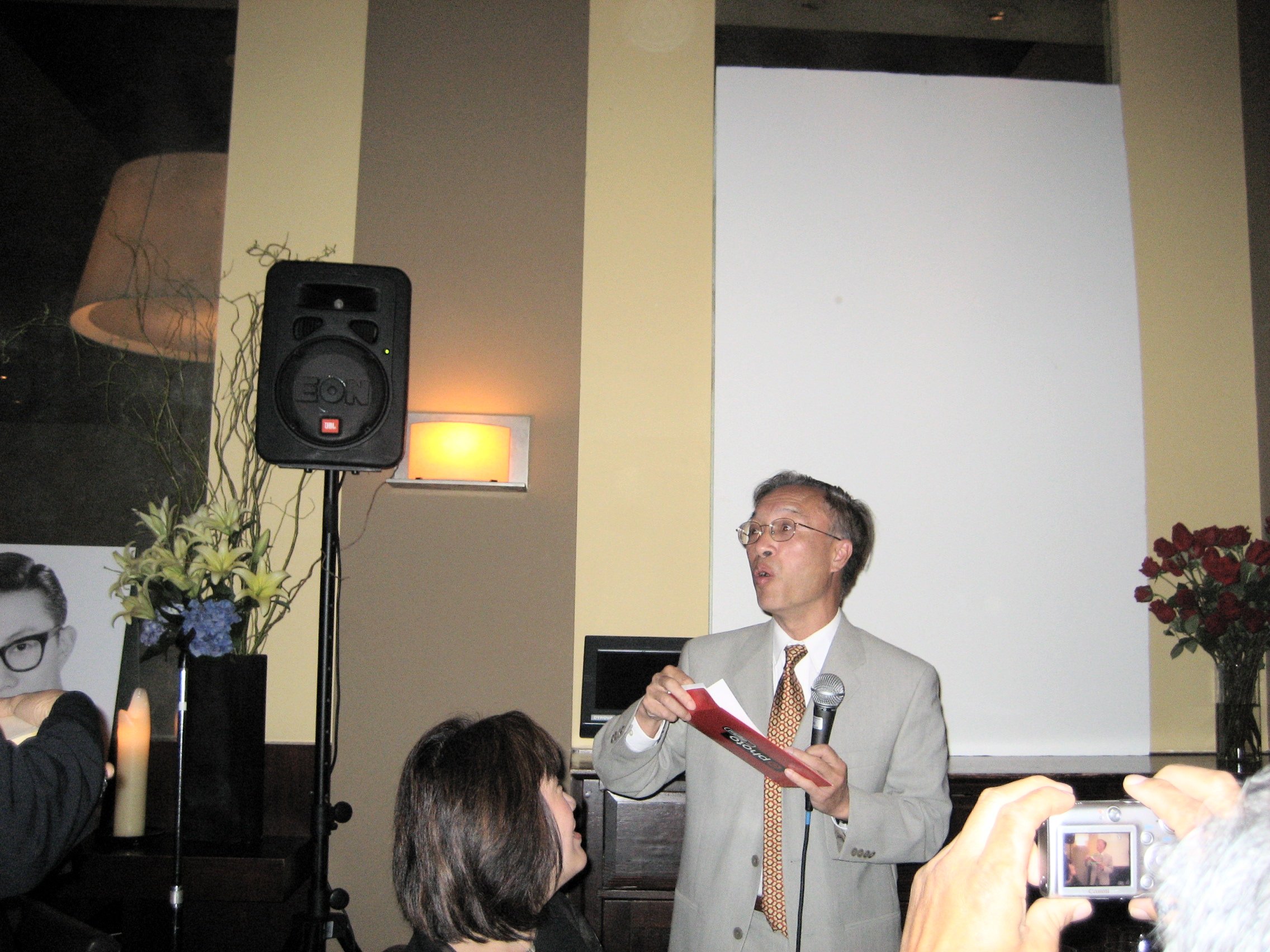 The dining area was decorated with poster size black and white photos of Rosalind and Milton's wedding 40 years earlier. More black and white photos were framed and placed at each place setting as decorations and gifts for the guests. Food at the Marche was excellent. The evening program was mostly impromptu but it came together as if they were rehearsed. Many friends and relatives made short speeches reminiscent of the good old days, while Phyllis and Amy quickly organized the Caltech Choir to show off their talents. After the July performance at Paul and Amy's party, the Choir was even more confident and won a lot of applause. Although the hosts specifically mentioned "No Gifts", it was hard for us to pass the opportunity to play up our organization, the "Wine and Meat Society". Paul was able to find a box of beef jerky and a bottle of 40 years old Chateau La Gaffeliere wine. After presenting the gift, Paul read the poem he composed just 24 hours ago.
