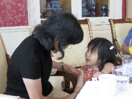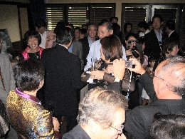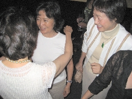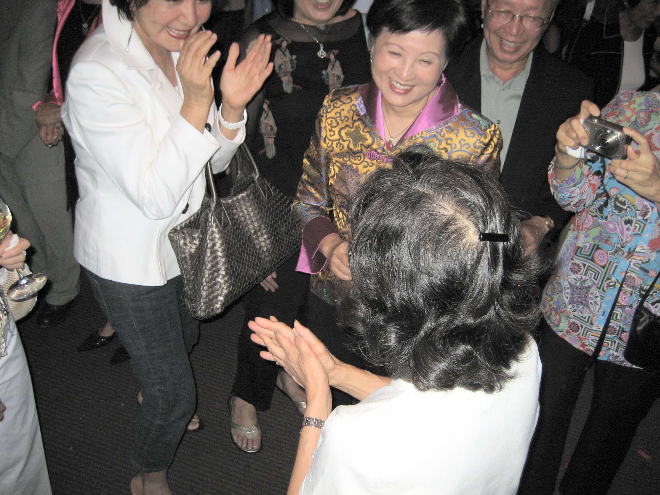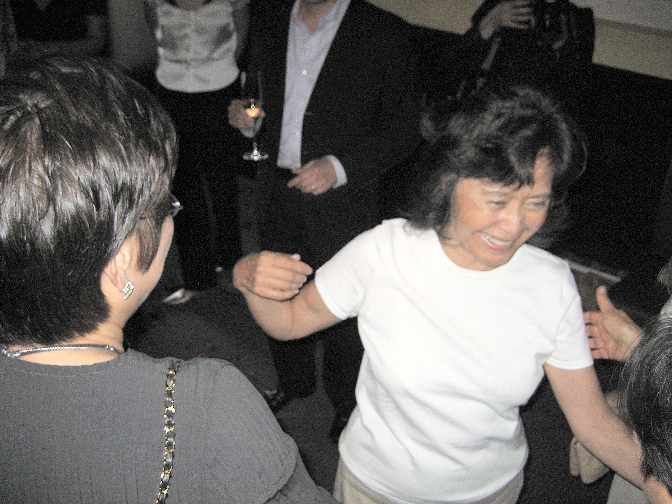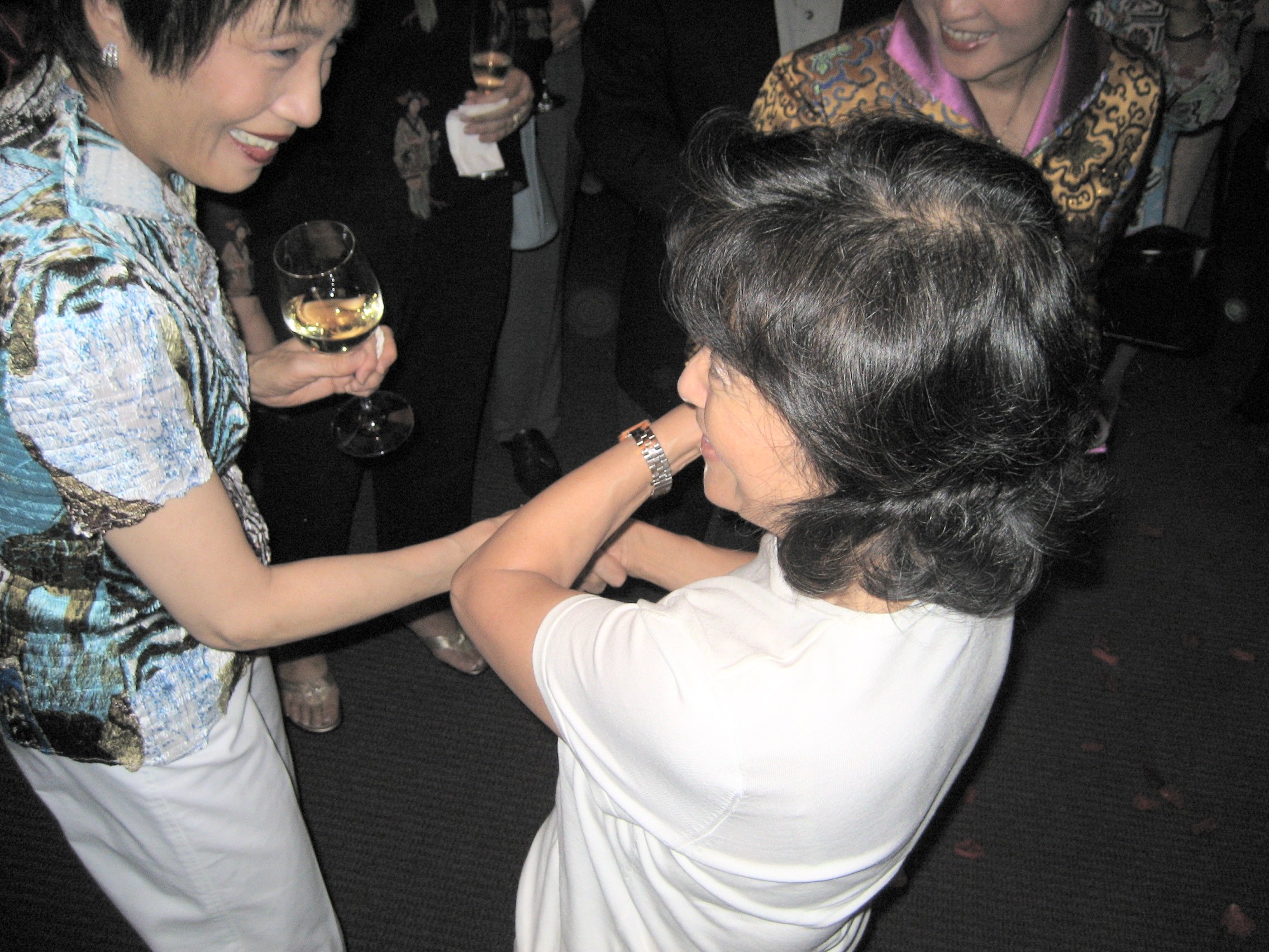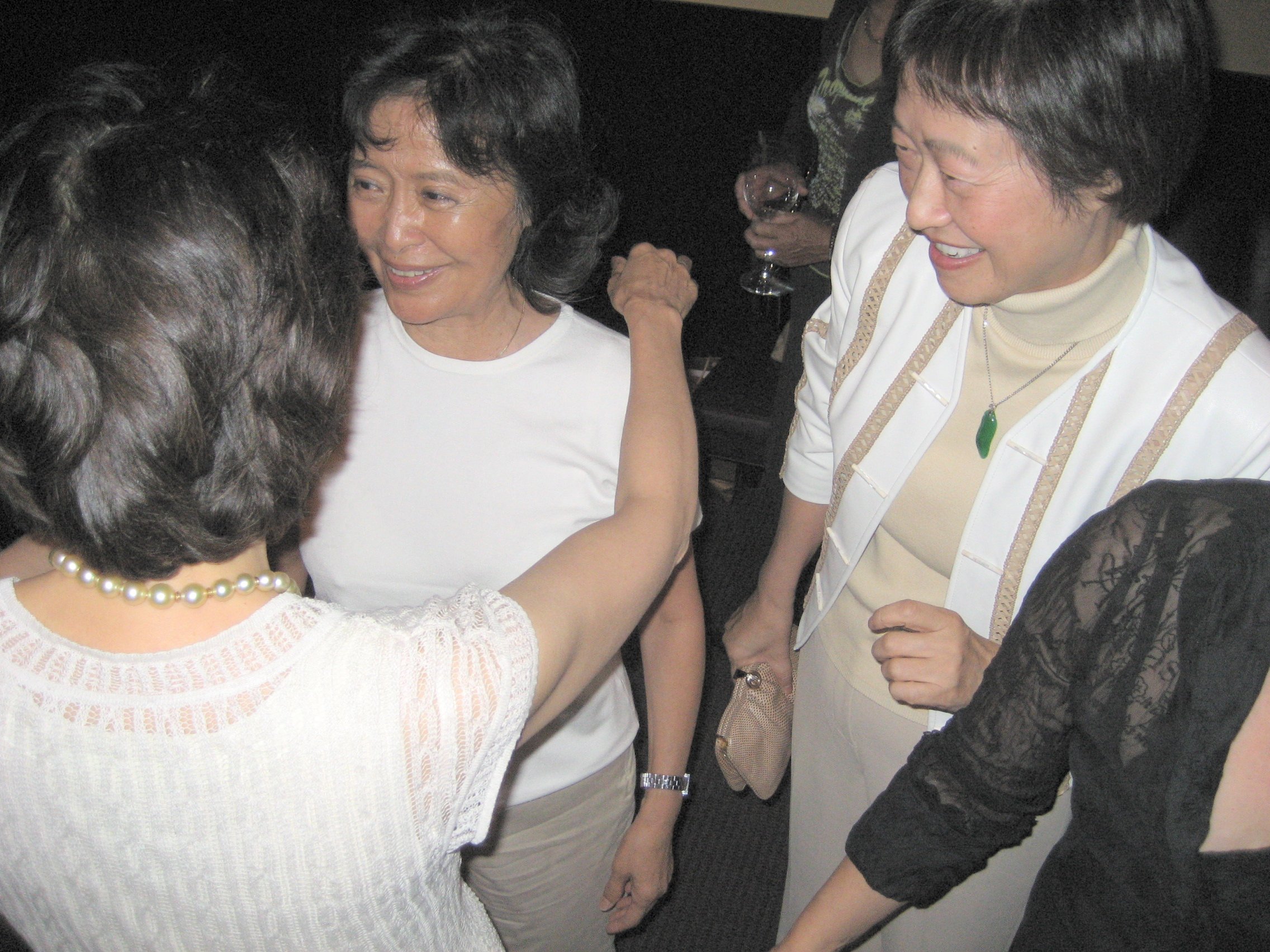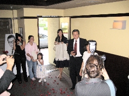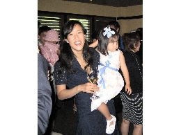 The Restaurant Marche was very close to the Stanford University and across the street from Yulanda and Felix's exquisite gift shop (Julie's). After an eye-opening tour of Julie's shop, we walked to the restaurant. There were about 70 guests in the dinning room with half of them from the Los Angeles area. Just before 6pm, we hid in the back room where Rosalind and Milton would make their entrance. When they arrived, they smiled with joy and hugged every body.