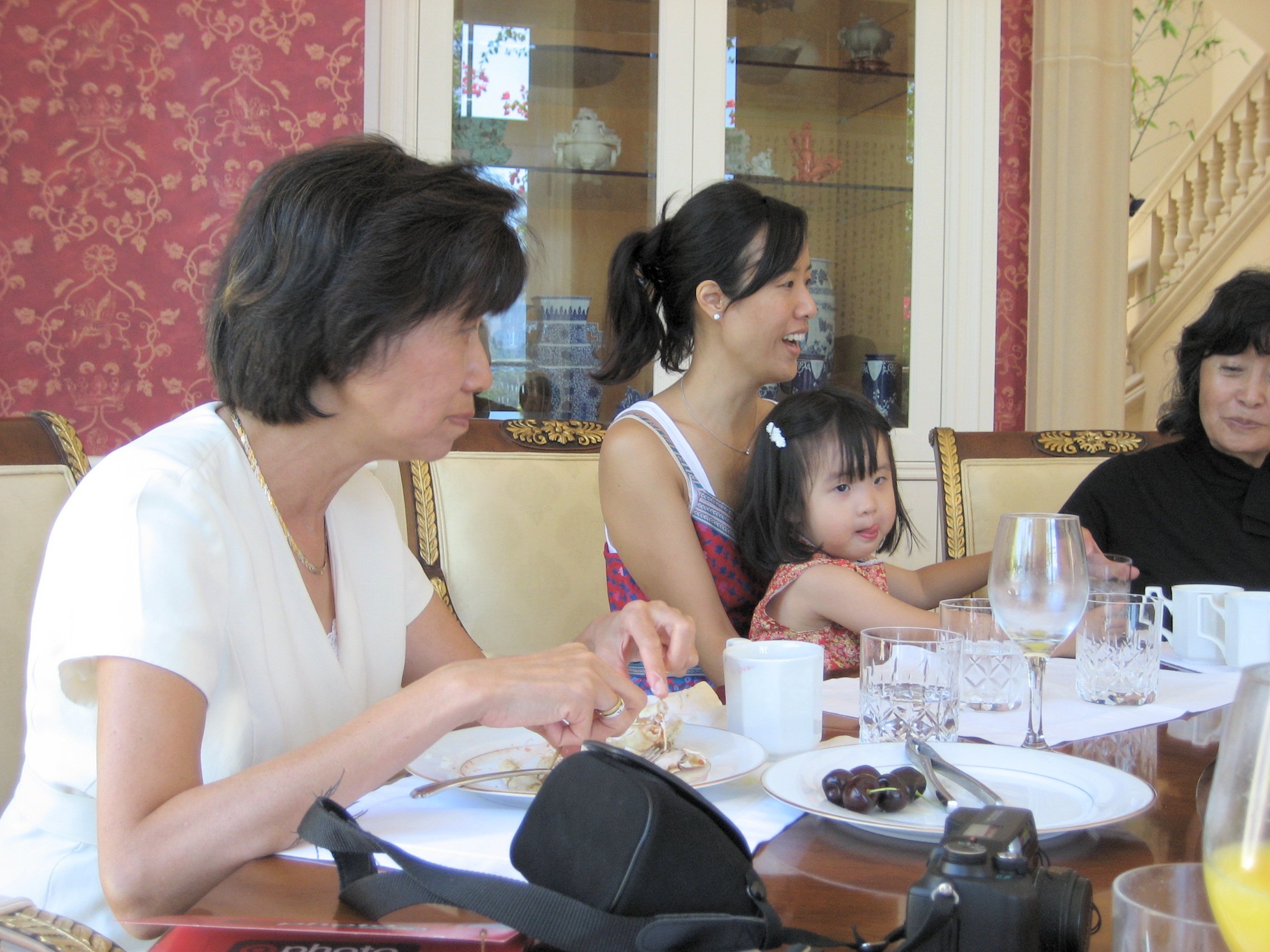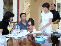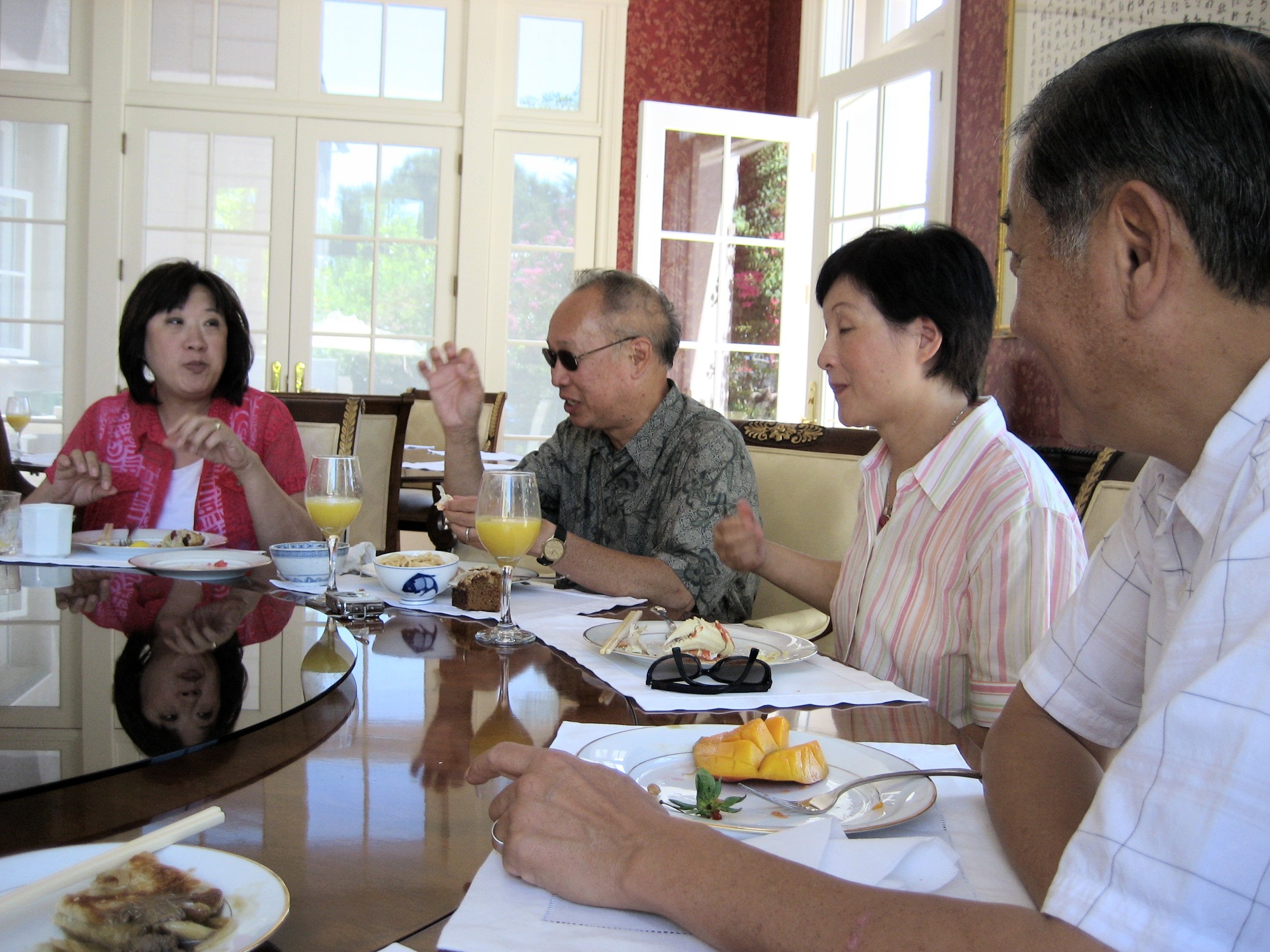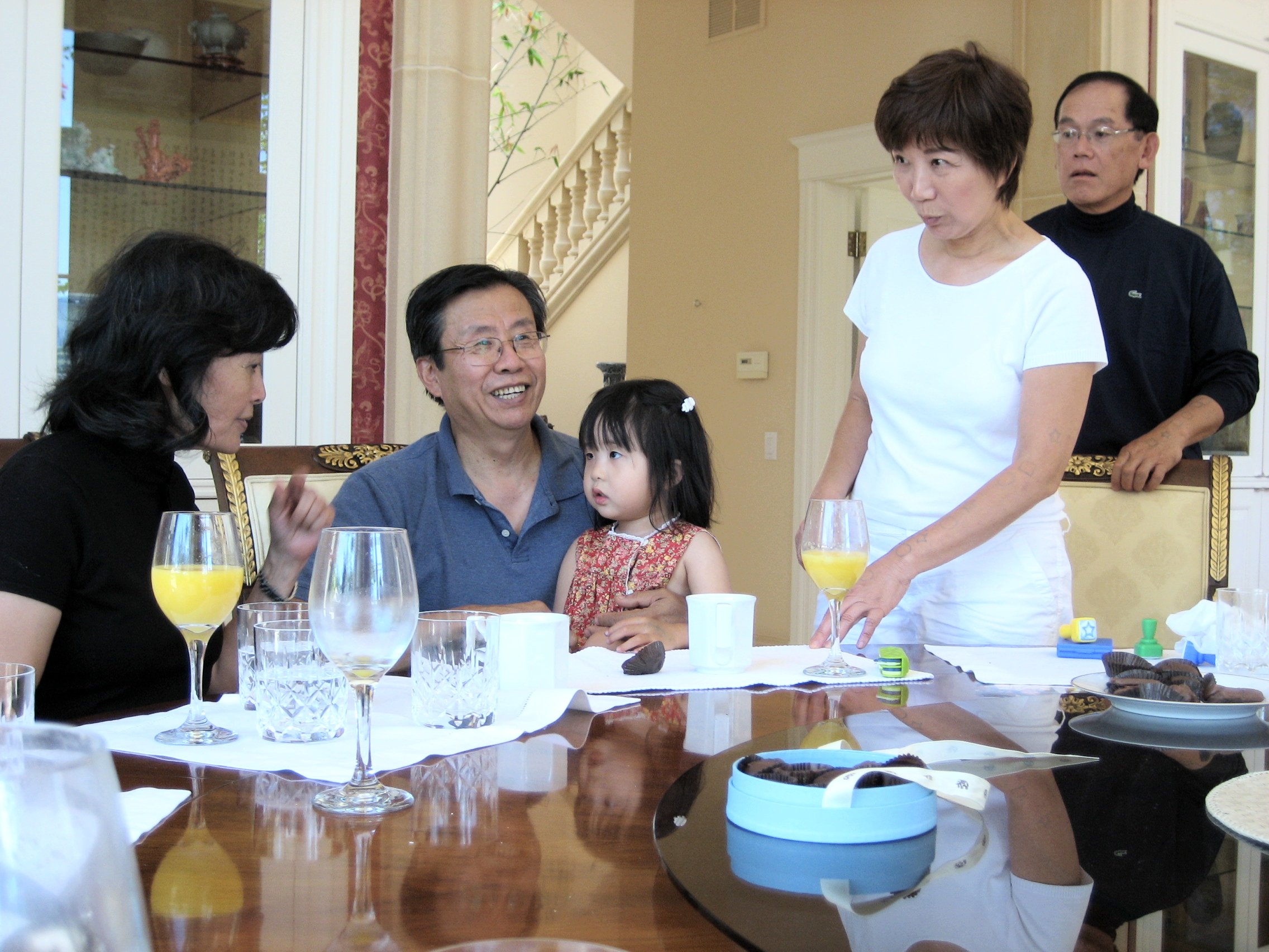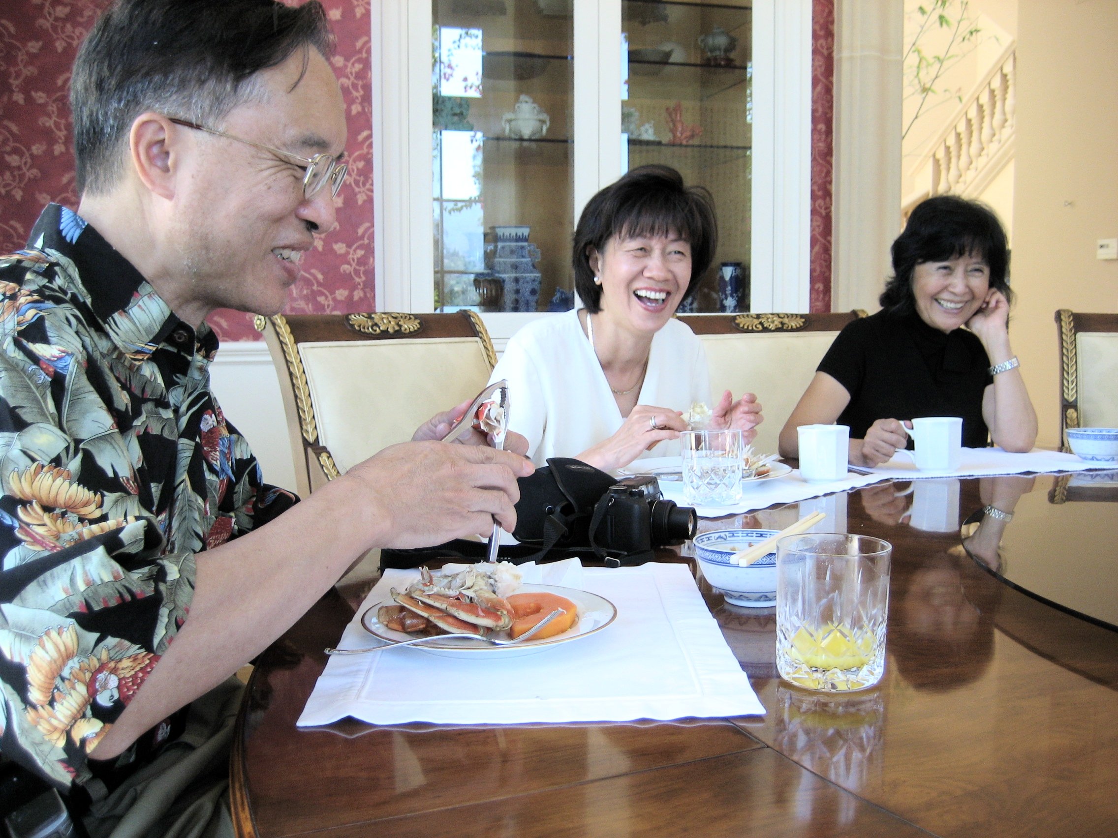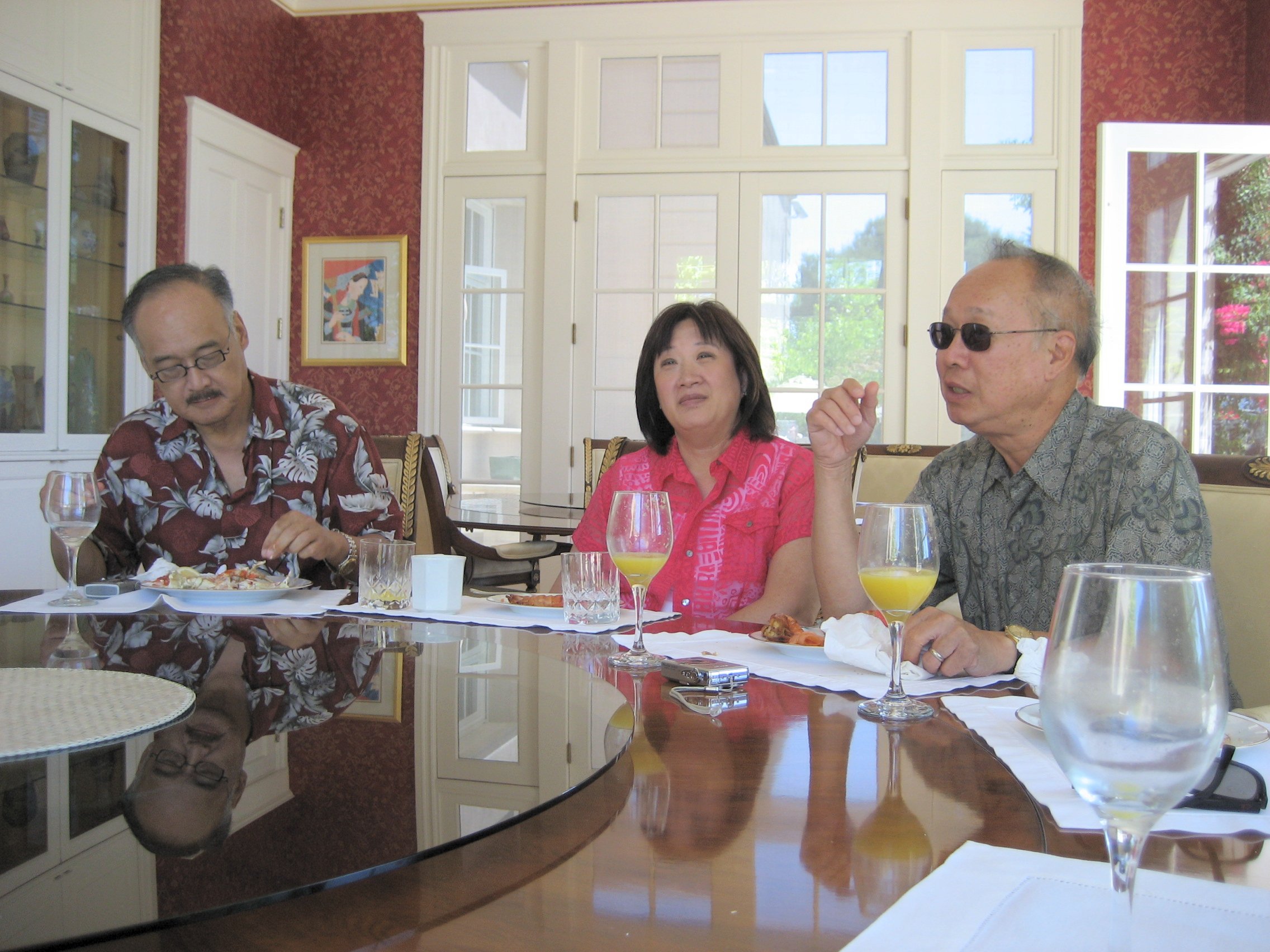 The next morning, Rosalind and Milton invited all of us to his house for an early brunch. That gave us more chance to talk to each other. Although there was plenty of food on the table, Milton insisted on having us try his Dan Dan Noodle as well. It was a bright and sunny day in the Bay area. The party was a great success. We hope to return for their 80th Anniversary. Perhaps Paul may have another bottle of the 1966 Chateau La Gaffeliere stashed away in his wine cellar. More importantly, by that time, Milton and Rosalind will be the first pair of qualified Love Birds among us, according to Paul's definition. Thanks for the memory and a great party.