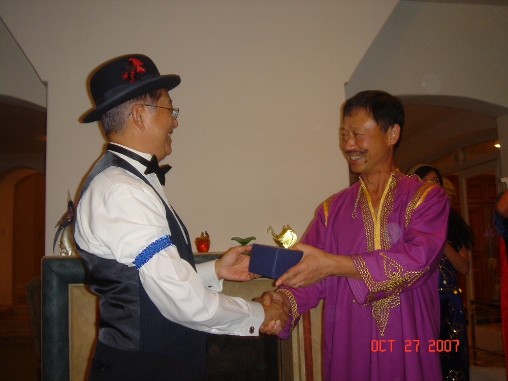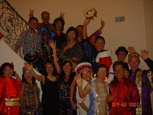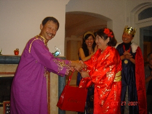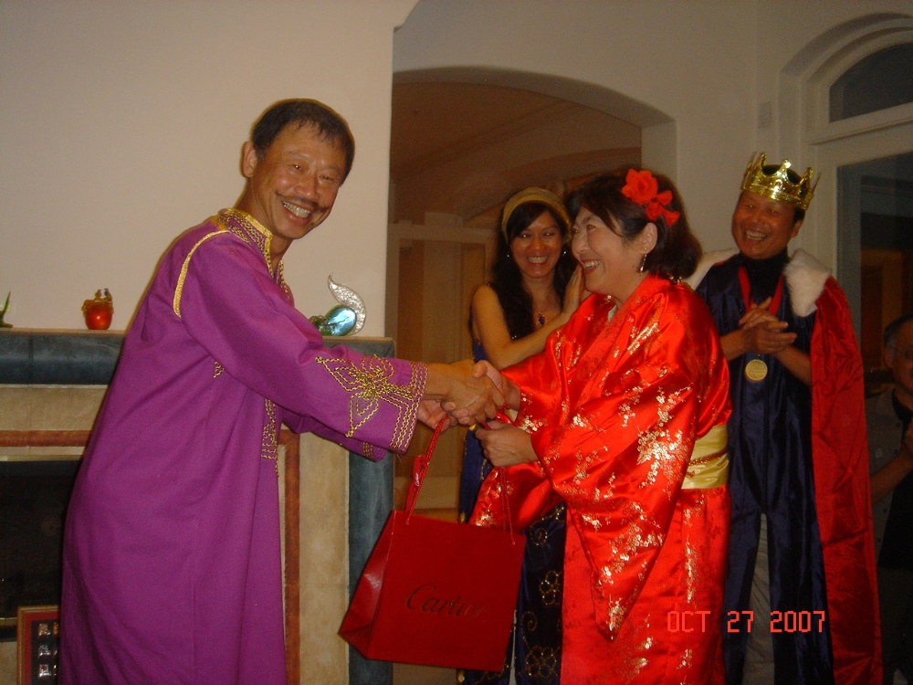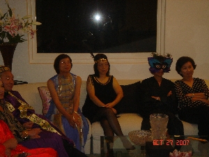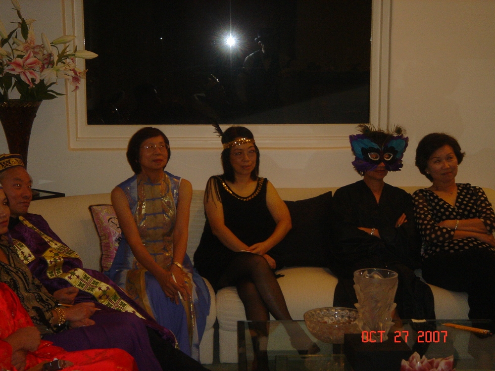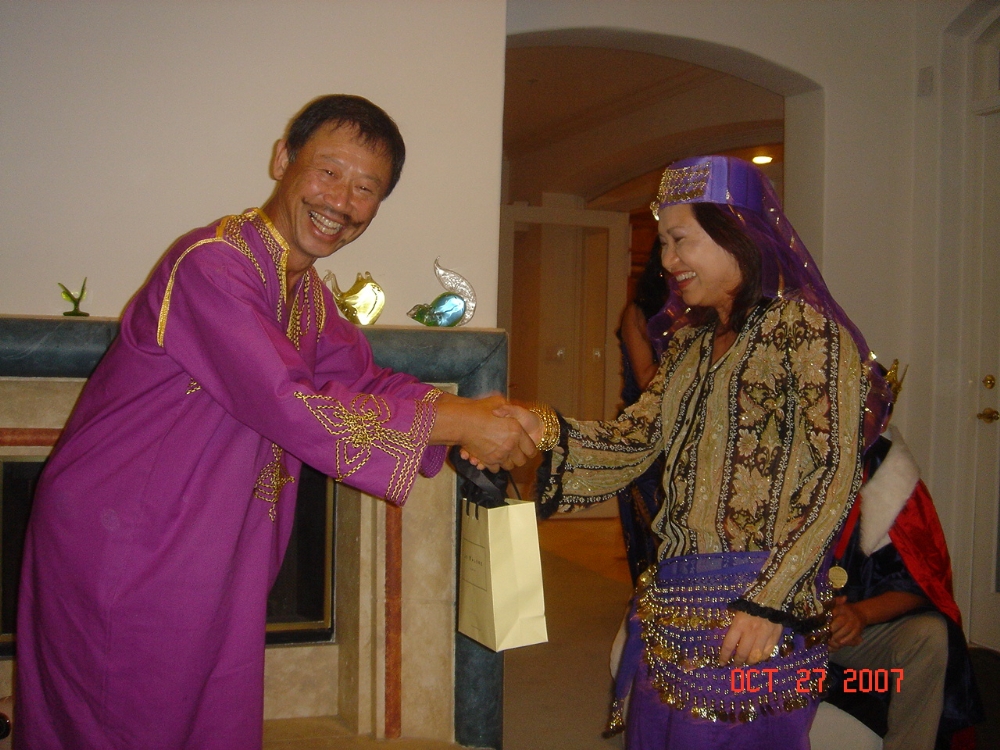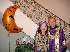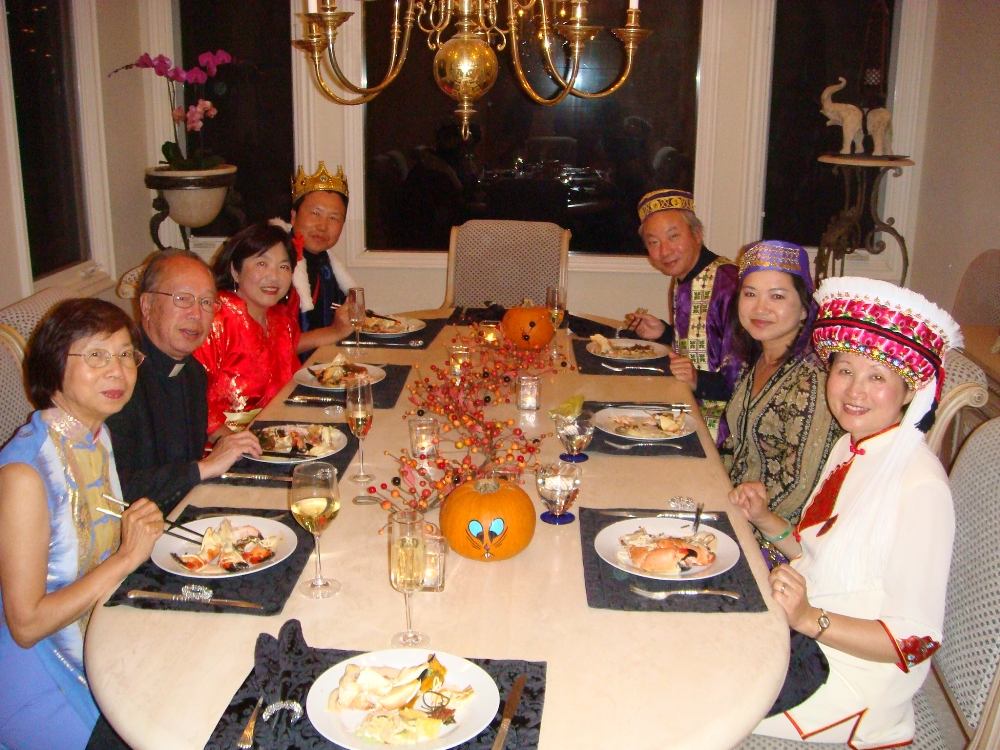 Thank you for such a fabulous Halloween party with a jovial but not haunting atmosphere. As usual with your treats, we enjoyed everything from your hospitality, the casual spirit to catch up with old friends, learning something new without having to pass your familiar quiz, the delicious food (especially the famous Huang stone crab, lobster and shrimp, tofu/meat, pig ear among the honorable mentions), the fashion show and tell, and the Parisian/Arabian musical ambience. Now we can see why the Persian party runs all night long, because the first time one looks at the watch, it's already close to the Dracula's witching hour of midnight, and for us elderly mortals, we have to retire home to our safe haven.
