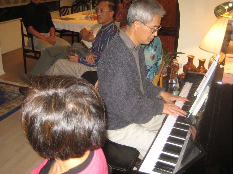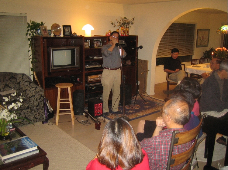 Other entertainment of the evening included Kenny Chan played Er-Wu with his friend to accompany him with piano. A Trio presentation included Kenny played harmonica, Tony played guitar and Monica sang. This can be seen in the following pictures. It was a fun evening. We all wish Monica and Tony to have a great adventure in the Capital. Please let us know when you come back to a visit so we can have an excuse to get together again.
